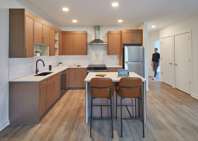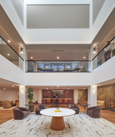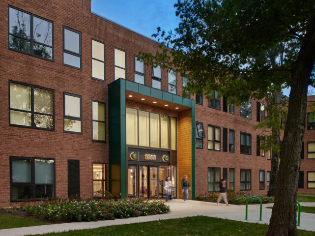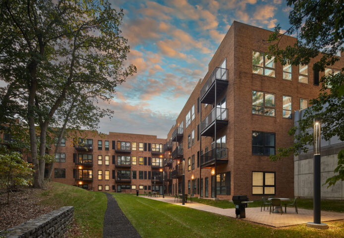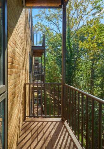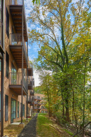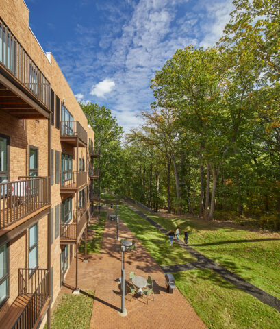 The complete residential conversion of the existing building will have a total of 116 dwelling units. The basement and terrace level spaces are intended for both common area lobby/amenity space as well as residential units. There will be limited exterior modifications to the existing building that will include bays and balconies to modulate the facade, treatment to the roofline, exterior at-grade private terraces, and common areas with views to the surrounding forest.