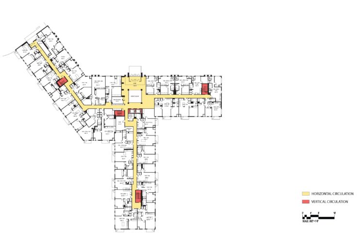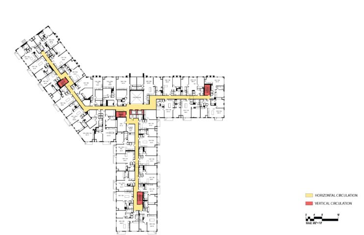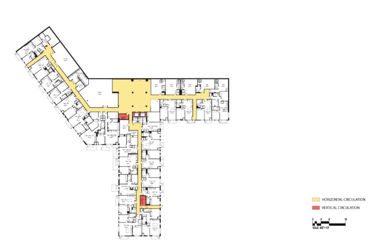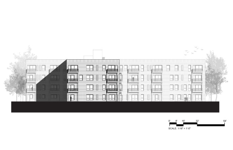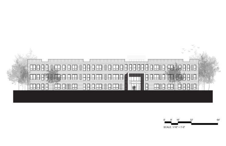 The complete residential conversion of the existing building will have a total of 116 dwelling units. The basement and terrace level spaces are intended for both common area lobby/amenity space as well as residential units. There will be limited exterior modifications to the existing building that will include bays and balconies to modulate the facade, treatment to the roofline, exterior at-grade private terraces, and common areas with views to the surrounding forest.